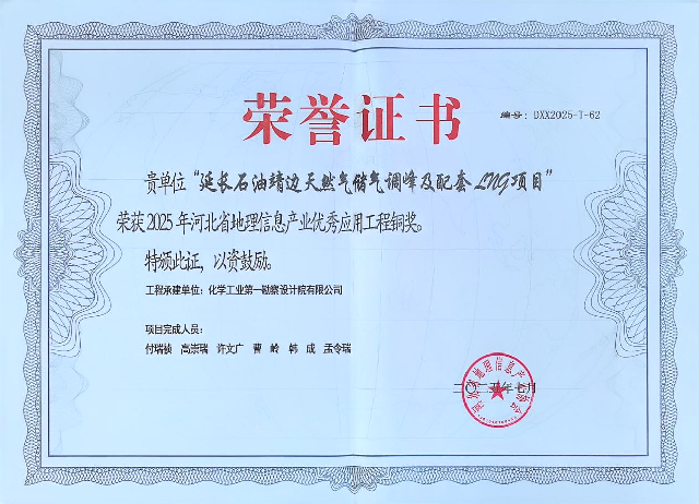 - ☆ 化勘设计院参建的延长石油LNG项目荣获2025年河北省地理信息产业优秀应用工程铜奖 2025-07-24